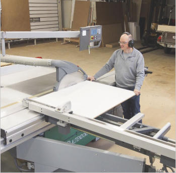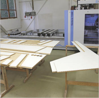/Der Plattenzuschnitt erfolgt in der Schreinerei konventionell gemäß